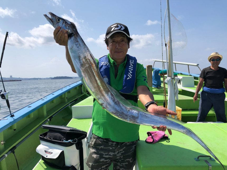 | 「タチウオ船担当船長コメント」 観音崎沖の70m前後を狙いました。 良型サイズ多数に、ドラゴンサイズも登場して順調に釣れました。 明日も凪予報です。皆様のご予約お待ちしています。 誘い重視のシャクリ釣りになりますので、テクニック・根気・体力勝負です。 ヒットパターン攻略目指してがんばりましょう。 状況により、浅場ポイント~深場ポイントまで幅広く狙います。 タナ取りは海面から、指示ダナ厳守でお願いしています。 リ-ルの水深計は必ず誤差がでますので、PEラインのマ-クで正確な計測をお願いします。 PEラインは2号厳守、オモリ40・60・80・100号を使用します。 (皆様統一します) 天秤、オモリの予備は必需品です。 ※当船では、テンヤ釣り・ルア-釣りは禁止です。 オマツリはお互い様です。全員で協力して楽しく釣りましょう! |