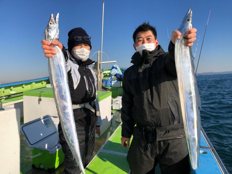 | 「タチウオ船担当船長コメント」 走水沖の60m前後を狙いました。 広範囲に反応が多く、良型サイズ多数で終始好調に釣れました。 一桁の方は1名だけで、トップ27匹が2名、続いて22匹が2名で、ほとんどの方が15匹超えと好釣果でした。 明後日は凪予報です。皆様のご予約お待ちしています。 誘い重視のシャクリ釣りになりますので、テクニック・根気・体力勝負です。 ヒットパターン攻略目指してがんばりましょう。 状況により、浅場ポイント~深場ポイントまで幅広く狙います。 タナ取りは海面から、指示ダナ厳守でお願いしています。 リ-ルの水深計は必ず誤差がでますので、PEラインのマ-クで正確な計測をお願いします。 PEラインは2号厳守、オモリ40・60・80・100号を使用します。 (皆様統一します) 天秤、オモリの予備は必需品です。 ※乗合船では、ルア-釣りは禁止です。 オマツリはお互い様です。全員で協力して楽しく釣りましょう! |