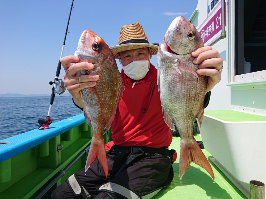 | 「マダイ船担当船長コメント」 久里浜沖の40m前後を狙いました。 一日を通してマダイの活性は良く、連発ヒットが多発して好調でした。 数発バラシもありましたが、トップ7匹、2番手6匹、3番手5匹で船中37匹と大漁でしたが、1名だけが残念でした。 マダイの他に、大アジ、クロダイ、メジナが混じりました。 6月1日(水)より、5:00乗船開始になります。 出船時間は、変更なく6:00出船です。 ムラっ気が多いマダイですが、スイッチ入れば爆発も!? 脂の乗りも良く食味も抜群です。皆様のご予約お待ちしています。 マダイは警戒心が強い魚です。ビシひとつの落下で群れが逃げていきます。 タナ取りは海面から、指示ダナ厳守でお願いしています。 リ-ルの水深計は必ず誤差がでますので、PEラインのマ-クで正確な計測をお願いします。 乗船開始集合時間 4:30 釣り座は乗船先着順です。 5:50離岸 6:00出船~13:00終了 |