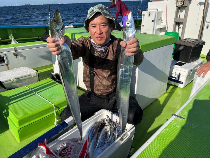| 「タチウオ船担当船長コメント」 乗合2隻で走水沖~大津沖の50m前後を狙い、連日好調持続中です。 一日を通してタチウオの活性が良く、終始好調に釣れましたが、誘い方次第で釣果に差がでました。 トップ36匹、2番手25匹で、平均10匹~15匹でした。 ここ数日は、天秤釣り有利な状況です。 テンヤ釣りの方は、テンヤ専用の硬めの竿をご用意ください。 その場しのぎのやわらかい竿だとテンヤまで動きが伝わらず当たりが出ません。 天秤&テンヤの合同船になりますので、途中チェンジも可能です。 ※レンタルタックルご利用の方は、天秤釣りのみになります。 サバの切り身は船に常備していますが、イワシ(別料金)が必要な方は必ず出船前に購入してください。 ※ルアー釣りは禁止です。 誘い重視のシャクリ釣りになりますので、テクニック・根気・体力勝負です。 ヒットパターン攻略目指してがんばりましょう。 状況により、浅場ポイント~深場ポイントまで幅広く狙います。 タナ取りは海面から、指示ダナ厳守でお願いしています。 リ-ルの水深計は必ず誤差がでますので、PEラインのマ-クで正確な計測をお願いします。 オマツリはお互い様です。全員で協力して楽しく釣りましょう! 乗船開始集合時間 6:00 釣り座は乗船先着順です。 7:10離岸 7:15出船~14:00終了 |