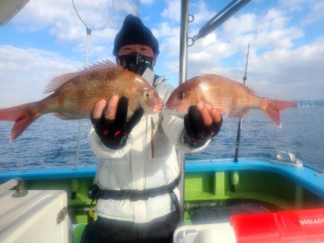 | 「マダイ船担当船長コメント」 久里浜沖の40m前後を狙いました。 潮変わりを中心にヒットが集中して、トップ2匹で船中8匹ゲットできました。 連日空いています。皆様のご予約お待ちしています。 タナ取りは海面から、指示ダナ厳守でお願いしています。 リ-ルの水深計は必ず誤差がでますので、PEラインのマ-クで正確な計測をお願いします。 オマツリはお互い様です。全員で協力して楽しく釣りましょう! 乗船開始集合時間 5:30 釣り座は乗船先着順です。 6:50離岸 7:00出船~14:00終了 |