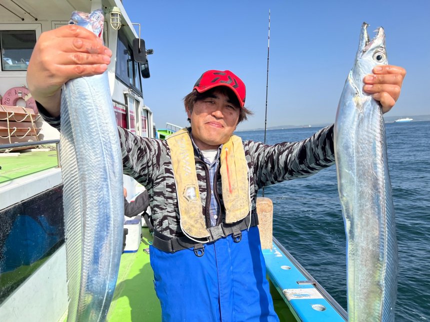 | 「タチウオ船担当船長コメント」 走水沖~大津沖の70m前後を狙いました。 難易度は高めで釣果も伸び悩みましたが、良型サイズ多数でした。 明日も凪予報です。ご予約受付中です。 天秤&テンヤの合同船になりますので、途中チェンジも可能です。 ※レンタルタックルご利用の方は、天秤釣りのみになります。 サバの切り身は船に常備していますが、イワシ(10匹¥600)が必要な方は必ず出船前に購入してください。乗り場で販売します。 誘い重視のシャクリ釣りになりますので、テクニック・根気・体力勝負です。 ヒットパターン攻略目指してがんばりましょう。 状況により、浅場ポイント~深場ポイントまで幅広く狙います。 タナ取りは海面から、指示ダナ厳守でお願いしています。 リ-ルの水深計は必ず誤差がでますので、PEラインのマ-クで正確な計測をお願いします。 オマツリはお互い様です。全員で協力して楽しく釣りましょう! 乗船開始集合時間 6:00 釣り座は乗船先着順です。 7:10離岸 7:15出船~14:00終了 |