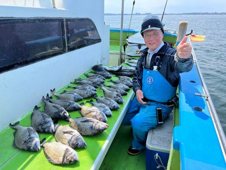| 「クロダイ船担当船長コメント」 下浦沖の30m前後を狙い、開始から入れ食いタイムに突入して爆釣でした。 トップ24匹、続いて21匹、平均15匹で、船中152匹と大漁でした。 ゲストに、マダイ、ハナダイ、大アジ。 短期の釣り物になりますので、早めの釣行をお勧めします。 乗船開始集合時間 4:30 釣り座は乗船先着順です。 5:50離岸 6:00出船~13:00終了 |