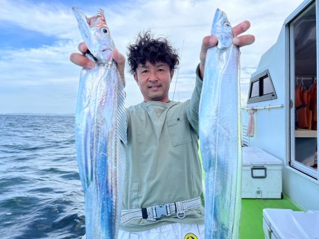 | 「タチウオ船担当船長コメント」 走水沖~大津沖の60m前後を狙いました。 中サイズメンインに、良型~ドラゴン級も登場して楽しめました。 明日も出船します。ご予約受付中です。 日によりサイズは小型~ドラゴンサイズまで様々です。臨機応変に対応しましょう。 混雑時・速潮時などPEラインの高切れが多発する事もありますが、オマツリはお互い様です。全員で協力して楽しく釣りましょう! 天秤&テンヤの合同船になりますので、途中チェンジも可能です。 ※レンタルタックルご利用の方は、天秤釣りのみになります。 サバの切り身は船に常備していますが、イワシ(10匹¥600)が必要な方は必ず出船前に購入してください。乗り場で販売します。 誘い重視のシャクリ釣りになりますので、テクニック・根気・体力勝負です。 ヒットパターン攻略目指してがんばりましょう。 状況により、浅場ポイント~深場ポイントまで幅広く狙います。 タナ取りは海面から、指示ダナ厳守でお願いしています。 リ-ルの水深計は必ず誤差がでますので、PEラインのマ-クで正確な計測をお願いします。 乗船開始集合時間 6:00 釣り座は乗船先着順です。 7:10離岸 7:15出船~14:00終了 |