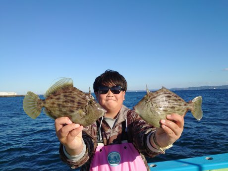 | 「カワハギ船担当船長コメント」 久里浜沖~竹岡沖の30m前後を狙いました。 小型は混じった程度で、中型主体に良型も多数混じって、トップ24匹、2番手15匹が2名で、半数以上の方がツ抜けと好釣果になりました。 強風の為、13:30に帰港しました。 明日は凪予報です。ご予約受付中です。 乗船開始集合時間 6:00 釣り座は乗船先着順です。 7:25離岸 7:30出船~14:30終了 |