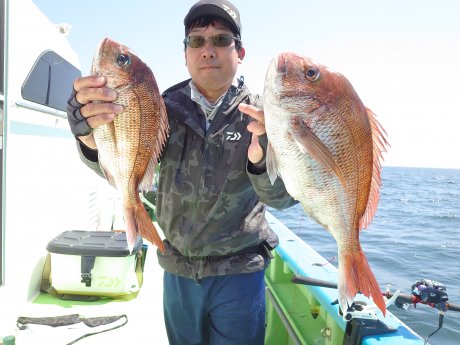 | 「マダイ船担当船長コメント」 久里浜沖の30m前後を狙いました。 数発バラシもありましたが、トップ3匹は胴の間の釣り座で、船中13匹ゲットできました。 明日も凪予報、ご予約受付中です。 マダイは警戒心が強く、ビシひとつの落下で群れが散ってしまいます。 タナ取りは海面から、指示ダナ厳守でお願いしています。 リ-ルの水深計は必ず誤差がでますので、PEラインのマ-クで正確な計測をお願いします。 オマツリはお互い様です。全員で協力して楽しく釣りましょう! 乗船開始集合時間 4:30 釣り座は乗船先着順です。 5:50離岸 6:00出船~13:00終了 |