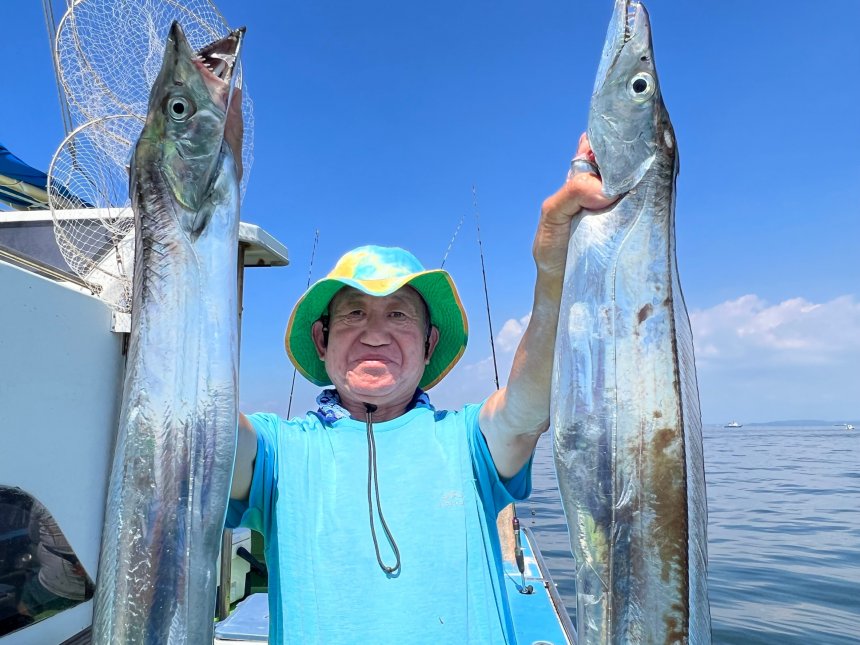 | 「タチウオ船担当船長コメント」 横須賀沖~走水沖の60m前後を狙いました。 好反応多数で、小~中サイズ主体に良型&ドラゴンも混じって一日好調でした。 トップ31匹で、半数以上の方が20匹超えと好釣果になりました。 明日も凪予報、空席多数、ご予約受付中です。 暑い日が続きます、熱中症対策は万全でお願いします。 夏の間、熱中症予防の為、13:30終了になります。 天秤&テンヤの合同船になりますので、途中チェンジも可能です。 ※レンタルタックルご利用の方は、天秤釣りのみになります。 オマツリはお互い様です。全員で協力して楽しく釣りましょう! サバの切り身は船に常備していますが、イワシ(10匹¥600)が必要な方は必ず出船前に購入してください。乗り場で販売します。 乗船開始集合時間 6:00 釣り座は乗船先着順です。 7:10離岸 7:15出船~13:30終了 |