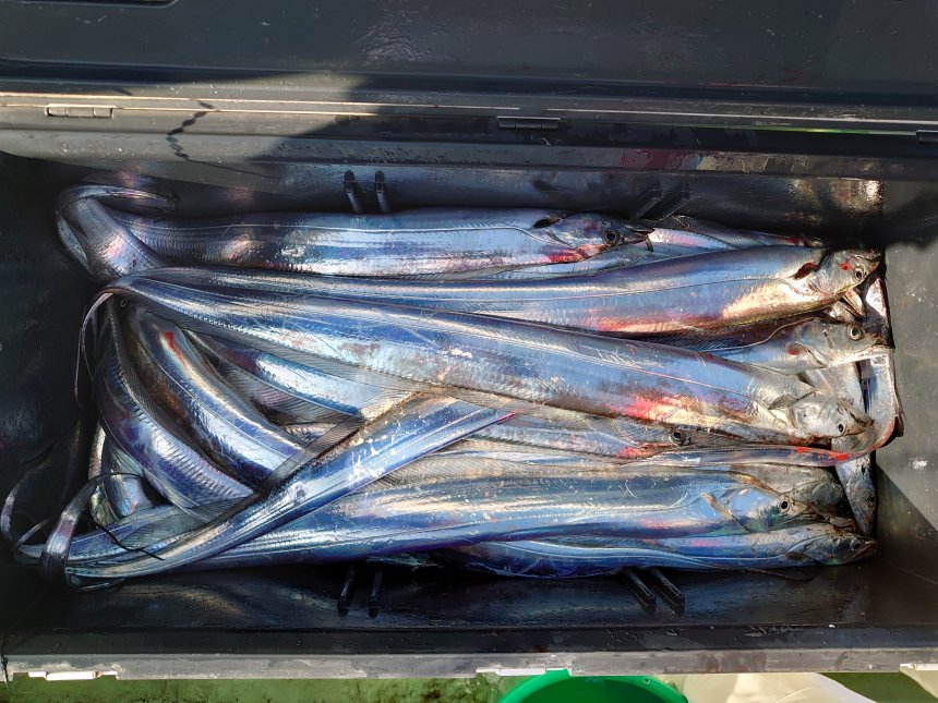 | 「タチウオ船担当船長コメント」 走水沖~大津沖の70m前後を狙い、連日爆釣中です。 中型主体に良型も混じって入れ食いタイムもあり、トップ43匹、2番手38匹で、20匹台の方が多く大漁釣果になりました。 週末は天気予報良く凪予報です。ご予約受付中です。 天秤&テンヤの合同船になりますので、途中チェンジも可能です。 ※レンタルタックルご利用の方は、天秤釣りのみになります。 オマツリはお互い様です。全員で協力して楽しく釣りましょう! サバの切り身は船に常備していますが、イワシ(10匹¥600)が必要な方は必ず出船前に購入してください。乗り場で販売します。 乗船開始集合時間 6:00 釣り座は乗船先着順です。 7:10離岸 7:15出船~14:00終了 |