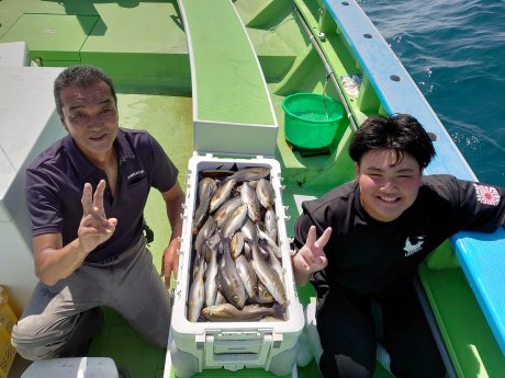 | 「イサキ船担当船長コメント」 乗合2隻で、剣崎沖の20m前後を狙いました。 トップ49匹、続いて45匹、44匹、41匹、40匹などで、一日楽しめました。 明日も大型船2隻で出船します。空席多数、ご予約受付中です。 PEラインは2号、ビシはFLサイズまでで60号をご用意下さい。 サニ-ちびライト60号がお勧めです。 レンタルタックルは、手動リ-ルのみになります。 オマツリはお互い様です。全員で協力して楽しく釣りましょう! 乗船開始集合時間 5:30 釣り座は乗船先着順です。 6:50離岸 7:00出船~14:00終了 |