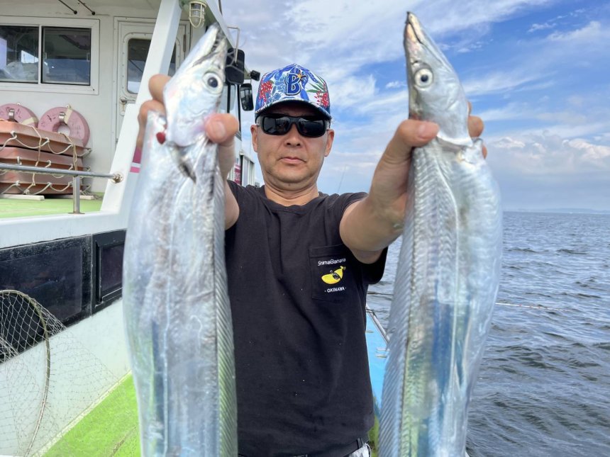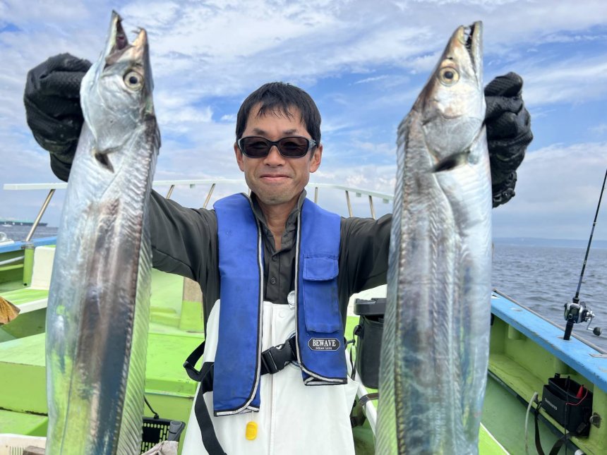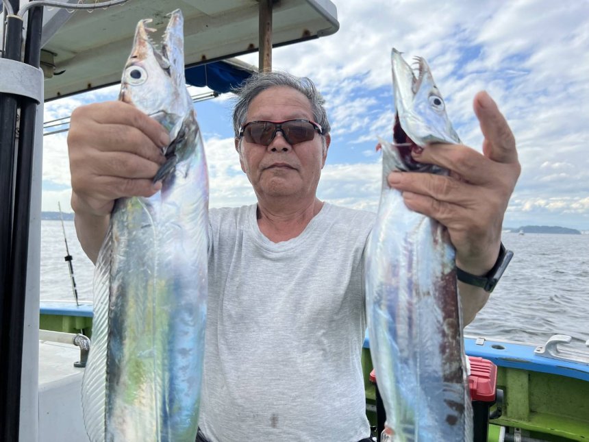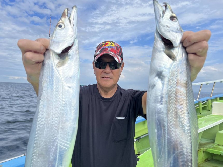 「ショートタチウオ船担当船長コメント」 走水沖~大津沖の60m前後を狙いました。 中型主体で、良型&ドラゴンも混じって一日楽しめました。 トップ29匹、2番手24匹で好釣果になりました。 明日も空席多数、ご予約受付中です。 オマツリはお互い様です。全員で協力して楽しく釣りましょう! 天秤&テンヤの合同船になりますので、途中チェンジも可能です。 ※レンタルタックルご利用の方は、天秤釣りのみになります。 サバの切り身は船に常備していますが、イワシ(10匹¥600)が必要な方は必ず出船前に購入してください。乗り場で販売します。 乗船開始集合時間 5:50 釣り座は乗船先着順です。 7:00頃離岸 7:15出船~13:00終了 |