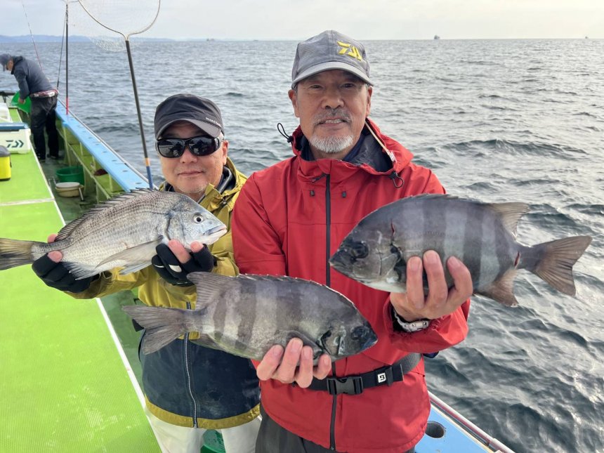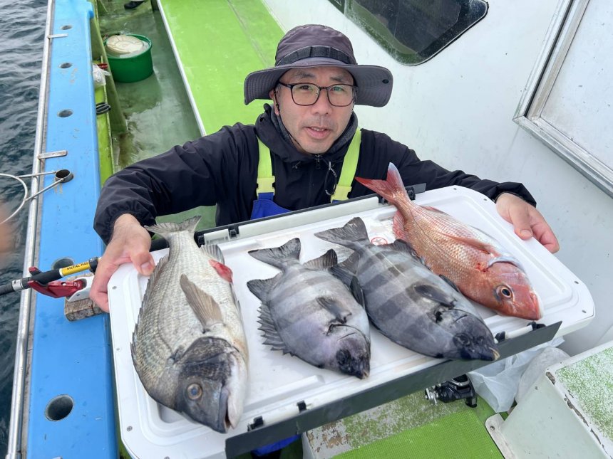 | 「コマセ五目船担当船長コメント」 久里浜沖の40m前後を狙いました。 イシダイ、マダイ、クロダイ、イサキ、カワハギ、ウマヅラが釣れて魚種多彩でした。 仕掛けは4m2本針&6m2本針2種類ご用意ください。 明日も風は凪予報、ご予約受付中です。 乗船開始集合時間 5:30 釣り座は乗船先着順です。 6:50離岸 7:00出船~14:00終了 |