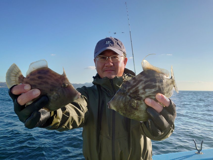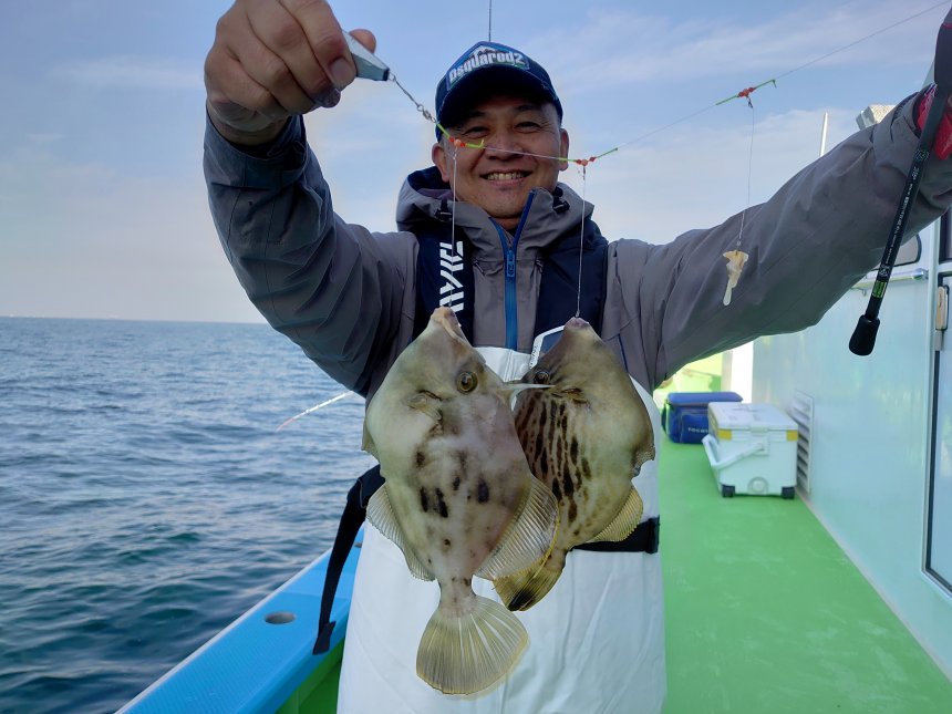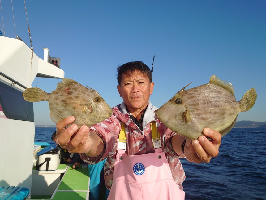 | 「カワハギ船担当船長コメント」 竹岡沖沖の30m前後を狙い、エサの取られも良く一日楽しめました。 ダブル、連発するシーンもあり、トップ27匹、2番手16匹が2名で好釣果になりました。 明日も凪予報、ご予約受付中です。 乗船開始集合時間 6:00 釣り座は乗船先着順です。 7:15離岸 7:30出船~14:30終了 |