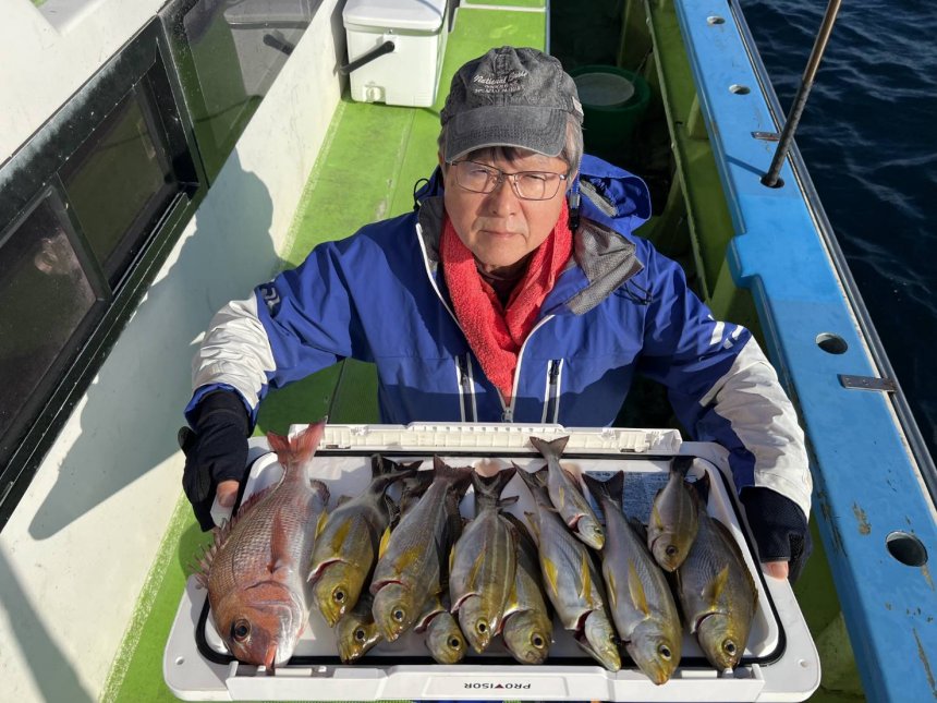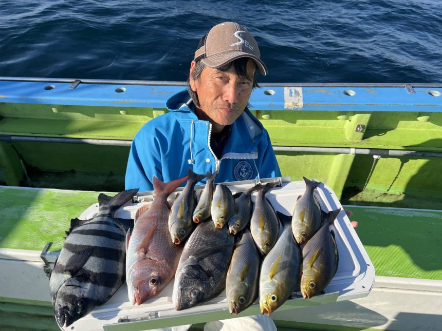 | 「コマセ五目船担当船長コメント」 久里浜沖の40m前後を狙いました。 イサキ、イシダイ、マダイ、クロダイ、イナダ、ウマヅラ、ウスバハギが釣れて、魚種多彩で楽しめました。 明日も凪予報、ご予約受付中です。 乗船開始集合時間 5:30 釣り座は乗船先着順です。 6:50離岸 7:00出船~14:00終了 |