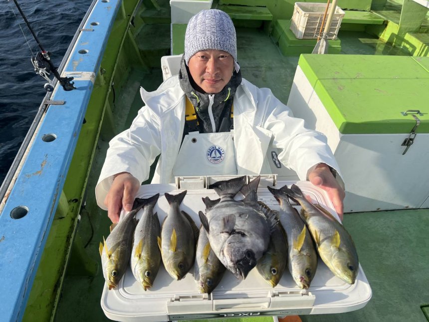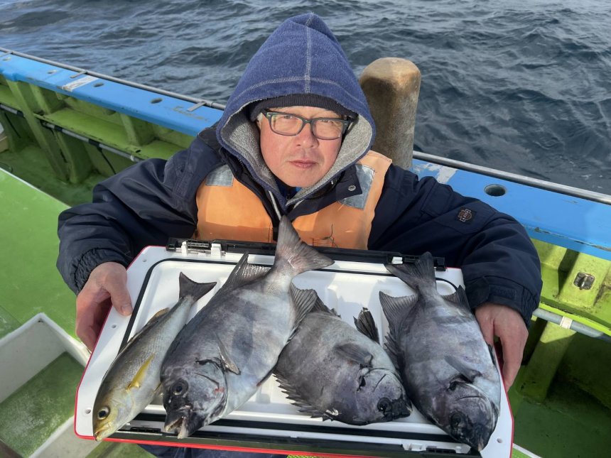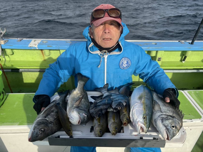 久里浜沖の40m前後を狙い、イサキ、イシダイ、クロダイ、イナダが釣れました。
