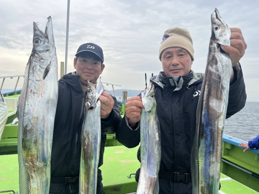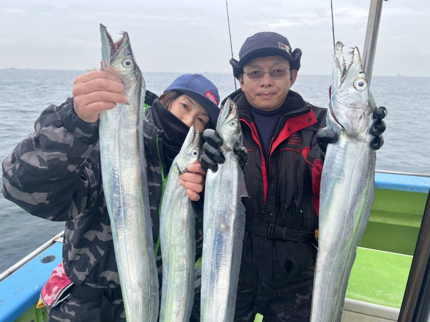 | 「ショートタチウオ船担当船長コメント」 観音崎沖の70m前後を狙い、中~良型サイズメインに、ドラゴンも登場して大漁釣果になりました。 トップ49匹、続いて44匹で、30匹超えが6名でした。 21日は、ご予約がなく休船になります。 下記日程で、ご予約受付中です。 オマツリはお互い様です。全員で協力して楽しく釣りましょう! 天秤&テンヤの合同船になりますので、途中チェンジも可能です。 ※レンタルタックルご利用の方は、天秤釣りのみになります。 サバの切り身は船に常備していますが、イワシ(10匹¥600)が必要な方は必ず出船前に購入してください。乗り場で販売します。 乗船開始集合時間 5:50 釣り座は乗船先着順です。 7:00頃離岸 7:15出船~13:00終了 |