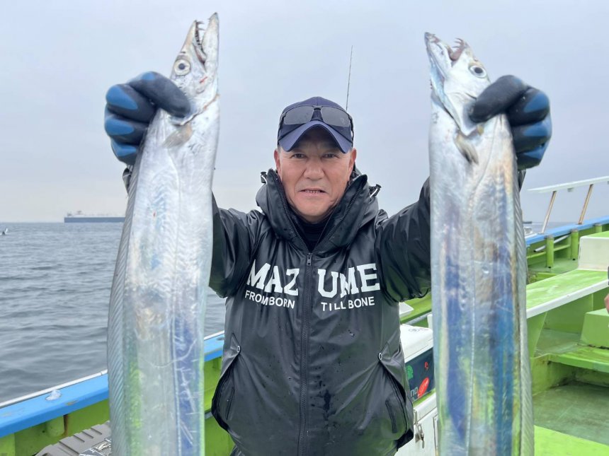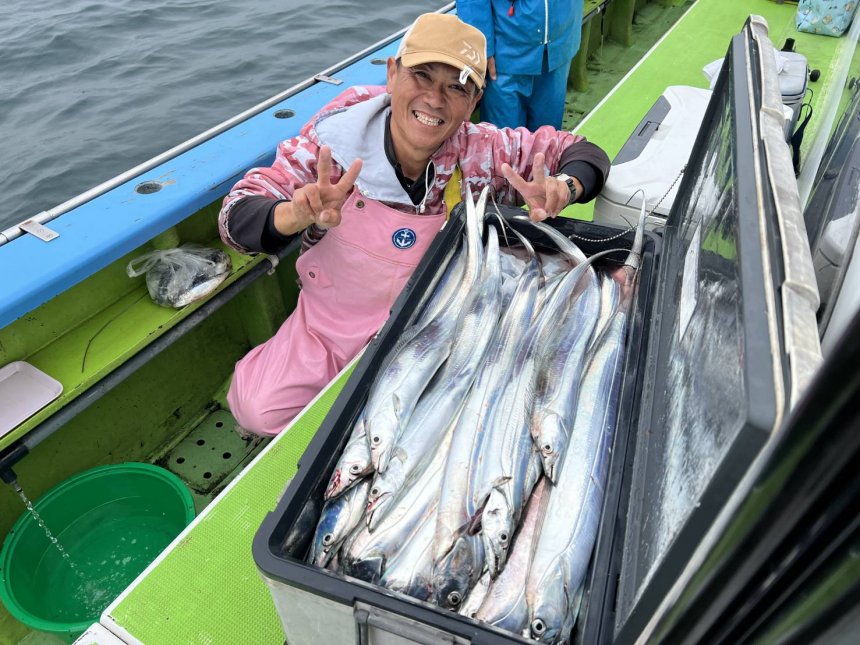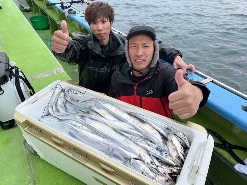 | 「ショートタチウオ船担当船長コメント」 走水沖の70m前後を狙い、入れ喰いタイムが続き爆釣でした。 トップ62匹、続いて50匹、47匹、45匹、43匹、42匹、41匹、40匹などで、ほとんどの方が30匹超えの大漁でした。 年末年始のご予約はお早めにどうぞ。ご予約受付中です。 オマツリはお互い様です。全員で協力して楽しく釣りましょう! 天秤&テンヤの合同船になりますので、途中チェンジも可能です。 ※レンタルタックルご利用の方は、天秤釣りのみになります。 サバの切り身は船に常備していますが、イワシ(10匹¥600)が必要な方は必ず出船前に購入してください。乗り場で販売します。 乗船開始集合時間 5:50 釣り座は乗船先着順です。 7:00頃離岸 7:15出船~13:00終了 |