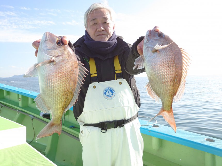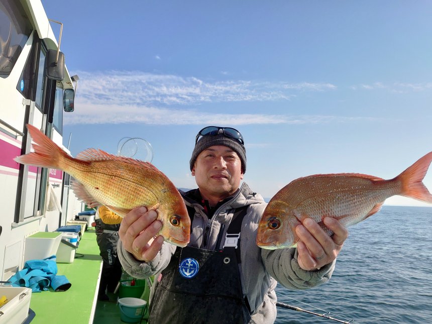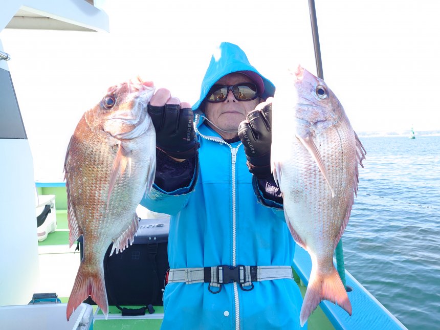 2月・3月限定冬マダイ仕立船。マダイの群れ多く狙い目です。