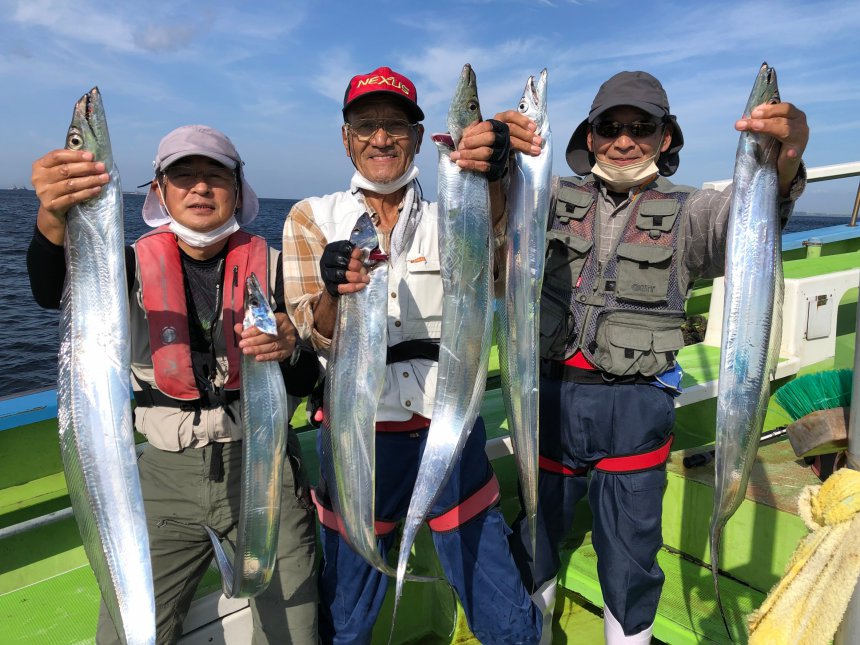 | 「タチウオ船担当船長コメント」 走水沖~大津沖の60m前後を狙いました。 良型率良く、ドラゴンサイズも登場しましたが、難易度は高めで難しい展開でした。 明日も凪予報です。皆様のご予約お待ちしています。 天秤釣り&テンヤ釣りの合同船になります。 無難にタチウオ釣りを楽しみたい方は天秤釣り、数よりビッグサイズにこだわりたい方はテンヤ釣りをお勧めします。 ※ルアー釣りは禁止です。 オマツリはお互い様です。全員で協力して楽しく釣りましょう! 誘い重視のシャクリ釣りになりますので、テクニック・根気・体力勝負です。 ヒットパターン攻略目指してがんばりましょう。 状況により、浅場ポイント~深場ポイントまで幅広く狙います。 タナ取りは海面から、指示ダナ厳守でお願いしています。 リ-ルの水深計は必ず誤差がでますので、PEラインのマ-クで正確な計測をお願いします。 乗船開始集合時間 6:00 釣り座は乗船先着順です。 タチウオ船 7:10離岸 7:15出船~14:00終了 |