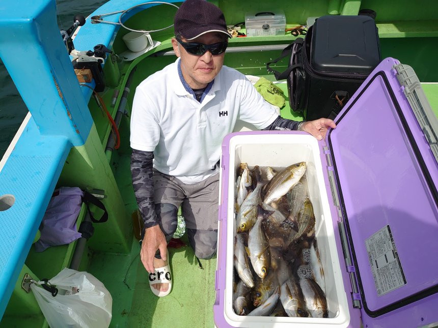 | 「イサキ船担当船長コメント」 乗合2隻で、剣崎沖の20m前後を狙い、連日好調持続中です。 トップ96匹、続いて74匹、70匹、50匹台が6名などで好釣果になりました。 暑い日が多くなりました。熱中症に気をつけて楽しみましょう。 21日(土)は満席、受付終了しました。 PEラインは2号、ビシはFLサイズまでで60号をご用意下さい。 サニ-ちびライト60号がお勧めです。 レンタルタックルは、手動リ-ルのみになります。 オマツリはお互い様です。全員で協力して楽しく釣りましょう! 乗船開始集合時間 5:30 釣り座は乗船先着順です。 6:50離岸 7:00出船~14:00終了 |