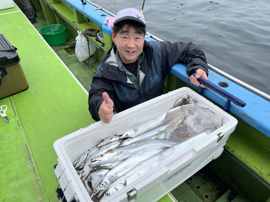 「ショートタチウオ船担当船長コメント」 走水沖の60m前後を狙い、中型主体で、良型&ドラゴンも混じって連日好調持続中です。 トップ48匹、2番手32匹で、20匹超えの方多数で好釣果になりました。 明日も期待して出船します。ご予約受付中です。 オマツリはお互い様です。全員で協力して楽しく釣りましょう! 天秤&テンヤの合同船になりますので、途中チェンジも可能です。 ※レンタルタックルご利用の方は、天秤釣りのみになります。 サバの切り身は船に常備していますが、イワシ(10匹¥600)が必要な方は必ず出船前に購入してください。乗り場で販売します。 乗船開始集合時間 5:50 釣り座は乗船先着順です。 7:00頃離岸 7:15出船~13:00終了 |