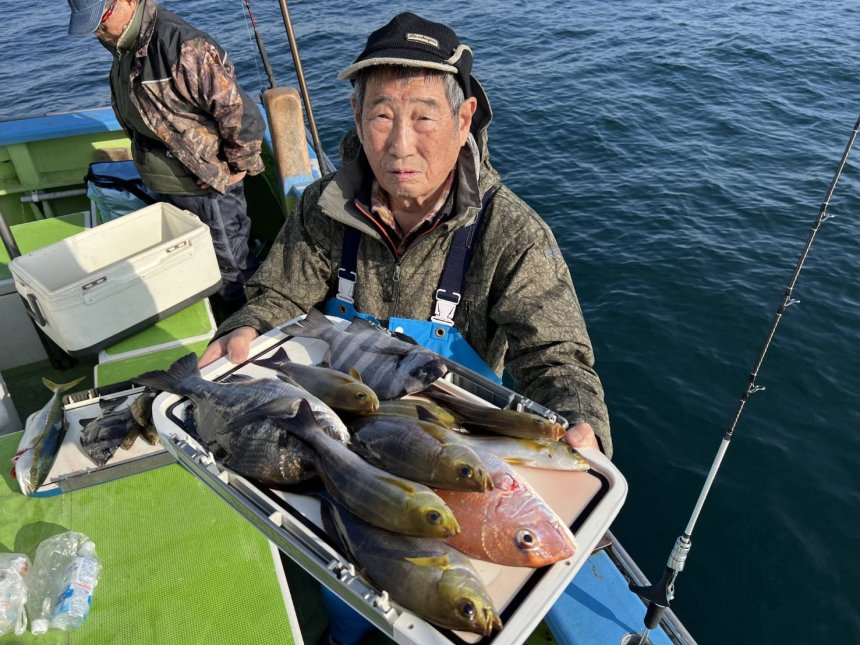 | 「コマセ五目船担当船長コメント」 久里浜沖の40m前後を狙い、魚種多彩で楽しめました。 イシダイ、マダイ、クロダイ、イサキ、イナダ、ウマヅラが釣れて好調でした。 仕掛けは4m2本針&6m2本針2種類ご用意ください。 明日も凪予報、ご予約受付中です。 乗船開始集合時間 5:30 釣り座は乗船先着順です。 6:50離岸 7:00出船~14:00終了 |