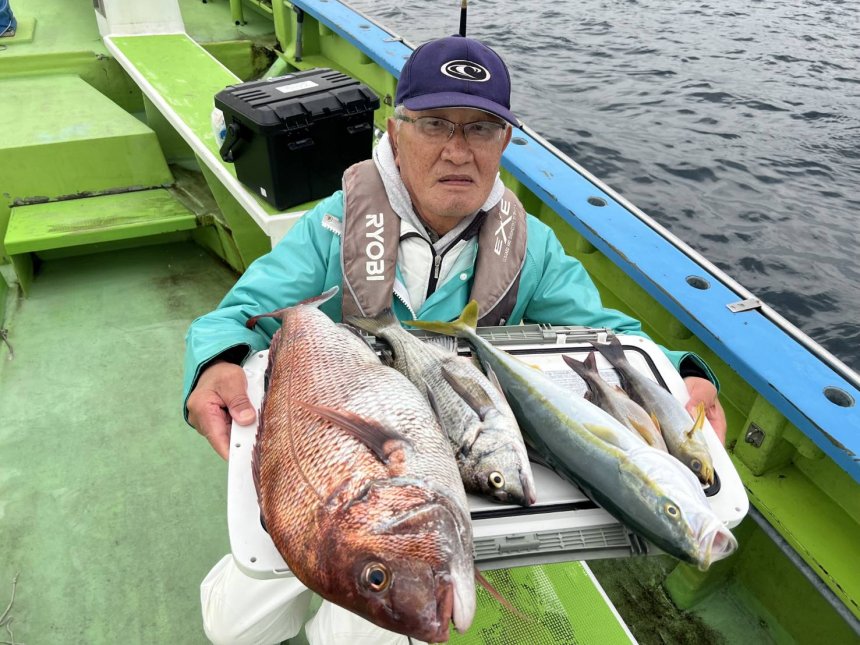 | 「コマセ五目船担当船長コメント」 久里浜沖の40m前後を狙いました。 イサキ、イシダイ、クロダイ、マダイ、イナダ、ウスバハギが釣れて楽しめました。 30日(日)のご予約受付中です。 乗船開始集合時間 5:30 釣り座は乗船先着順です。 6:50離岸 7:00出船~14:00終了 |