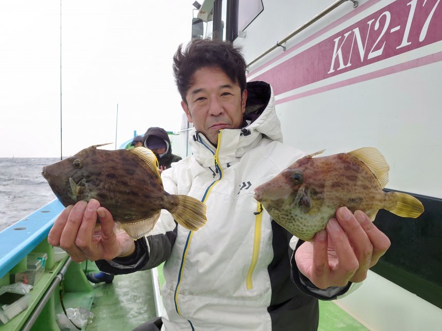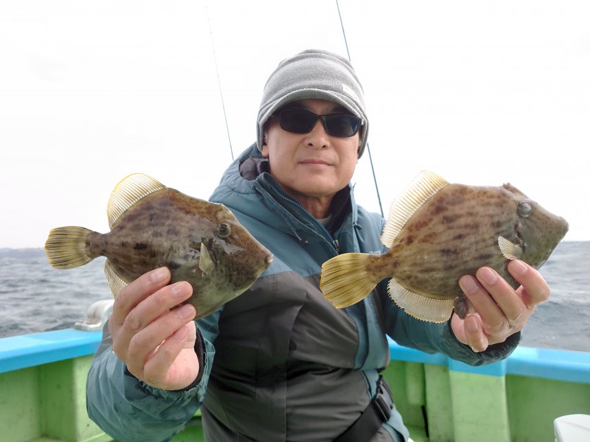 | 「カワハギ船担当船長コメント」 竹岡沖の30m前後を狙いました。 ダブルや連発シーンもありましたが、難易度高く釣果は伸びませんでした。 トップ14匹、続いて13匹、9匹が6名で、1名だけが残念でした。 下記日程で、ご予約受付中です。 乗船開始集合時間 6:00 釣り座は乗船先着順です。 7:15離岸 7:30出船~14:30終了 |