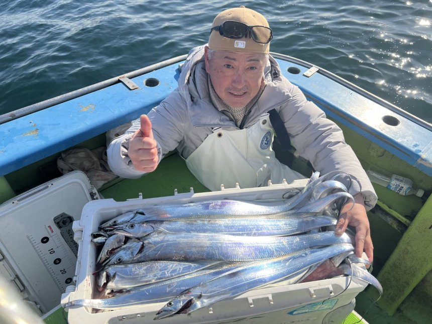 | 「ショートタチウオ船担当船長コメント」 走水沖~観音崎沖の70m前後を狙いました。 好反応多数で終始好調な釣れ具合で、トップ32匹で、20匹超えが10名と好釣果になりました。 新年も期待して出船します。ご予約受付中です。 オマツリはお互い様です。全員で協力して楽しく釣りましょう! 天秤&テンヤの合同船になりますので、途中チェンジも可能です。 ※レンタルタックルご利用の方は、天秤釣りのみになります。 サバの切り身は船に常備していますが、イワシ(10匹¥600)が必要な方は必ず出船前に購入してください。乗り場で販売します。 乗船開始集合時間 5:50 釣り座は乗船先着順です。 7:00頃離岸 7:15出船~13:00終了 |
