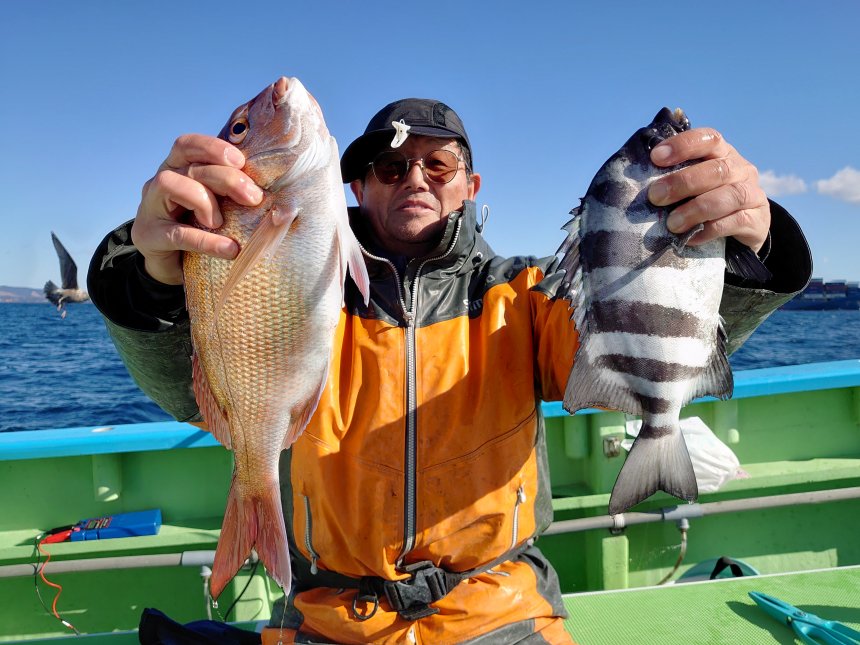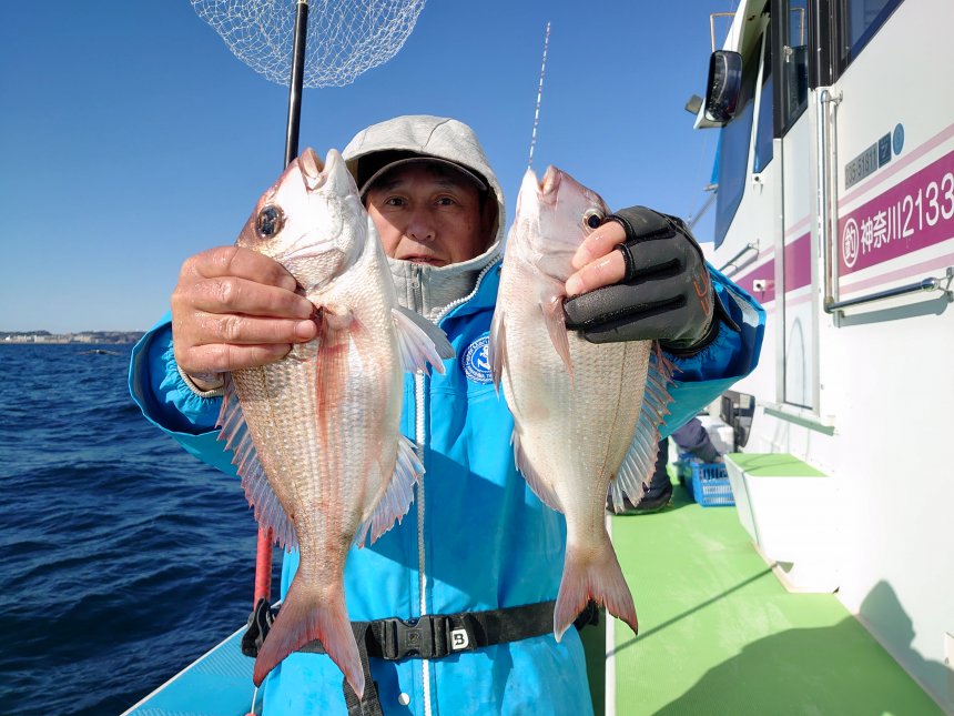 | 「マダイ船担当船長コメント」 久里浜沖の40m前後を狙い、連日好調持続中です。 トップ10匹、2番手7匹などで、船中29匹と好釣果になりました。 マダイの他、イシダイ、イナダも登場してヒット多く楽しめました。 冬マダイは脂ノリノリで食味も抜群ですね。 明日も晴天凪予報、ご予約受付中です。 マダイは警戒心が強く、ビシひとつの落下で群れが散ってしまいます。 タナ取りは海面から、指示ダナ厳守でお願いしています。 リ-ルの水深計は必ず誤差がでますので、PEラインのマ-クで正確な計測をお願いします。 オマツリはお互い様です。全員で協力して楽しく釣りましょう! 乗船開始集合時間 5:30 釣り座は乗船先着順です。 6:50離岸 7:00出船~14:00終了 |