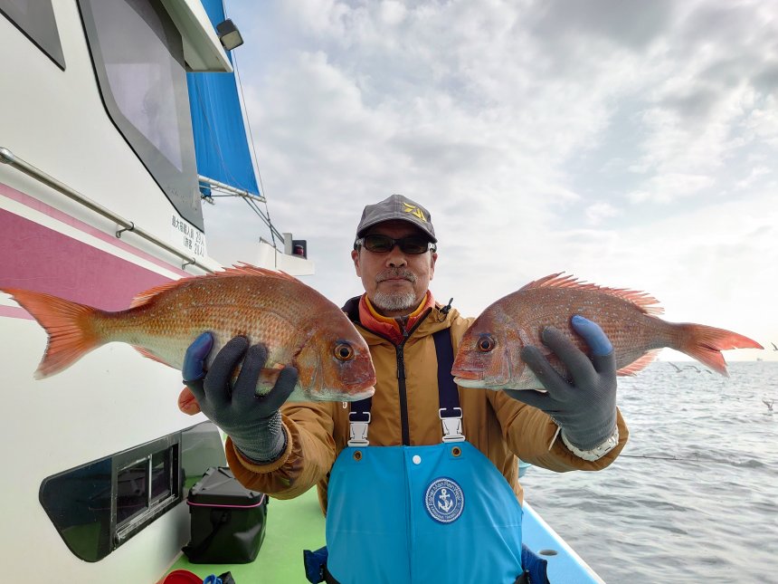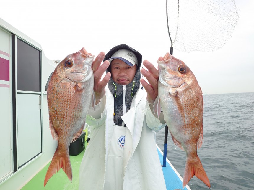 | 「マダイ船担当船長コメント」 久里浜沖の30m前後を狙い、マダイ、イシダイ、クロダイ、イナダが登場して一日楽しめました。 マダイトップ9匹、続いて6匹、5匹が2名などで船中35匹と大漁釣果になりました。 仕掛けは細工なしのシンプルな物がお勧め、長さは10m統一です。 マダイは警戒心が強く、ビシひとつの落下で群れが散ってしまいます。 タナ取りは海面から、指示ダナ厳守でお願いしています。 リ-ルの水深計は必ず誤差がでますので、PEラインのマ-クで正確な計測をお願いします。 オマツリはお互い様です。全員で協力して楽しく釣りましょう! 乗船開始集合時間 5:30 釣り座は乗船先着順です。 6:50離岸 7:00出船~14:00終了 |